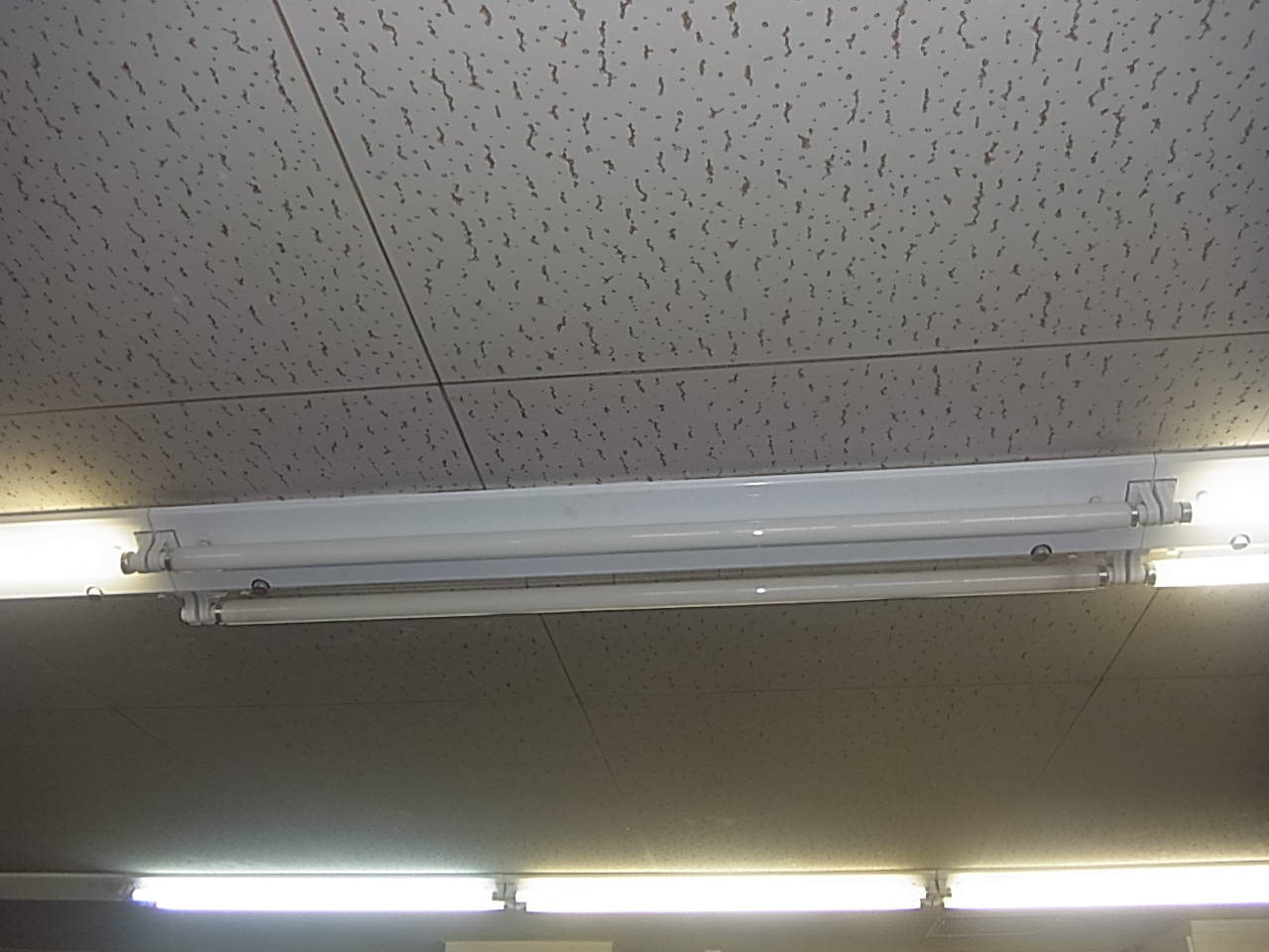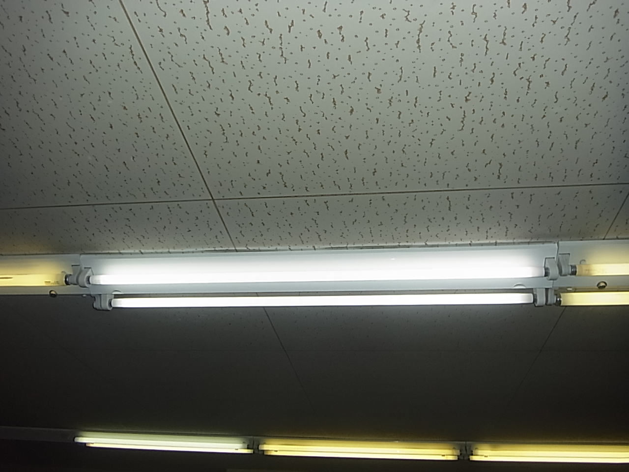 工事完了です!新しく取り換えた蛍光灯が明るいので写真で見ると周りについている蛍光管が黄色く写ってしまいました。