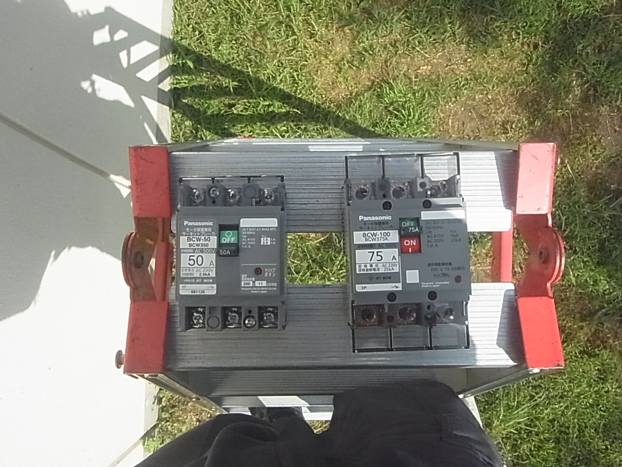 ブレーカー取替前のものです。現在のケーブル太さにおいて許容電流内の大きさまでブレーカー容量を増やします。現在の電線太さにおいての許容電流値に合うブレーカー容量は75Aです。