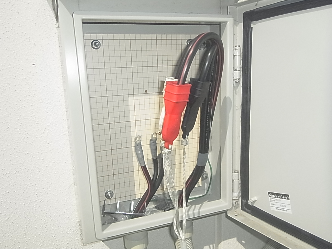 雨水などの侵入や、経年劣化により、錆びつき漏電等の支障が出ないように配電盤の鉄箱を取り換えます。既設は壁埋込でしたので建物外壁表面で切り落としました。