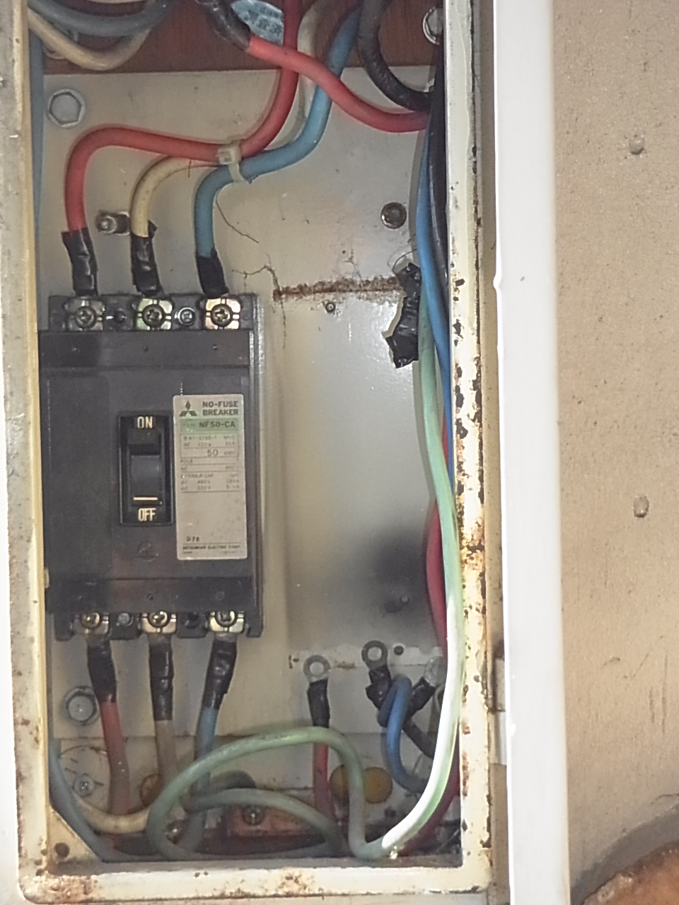 上の写真は、既設のヒューズ式ナイフスイッチです。