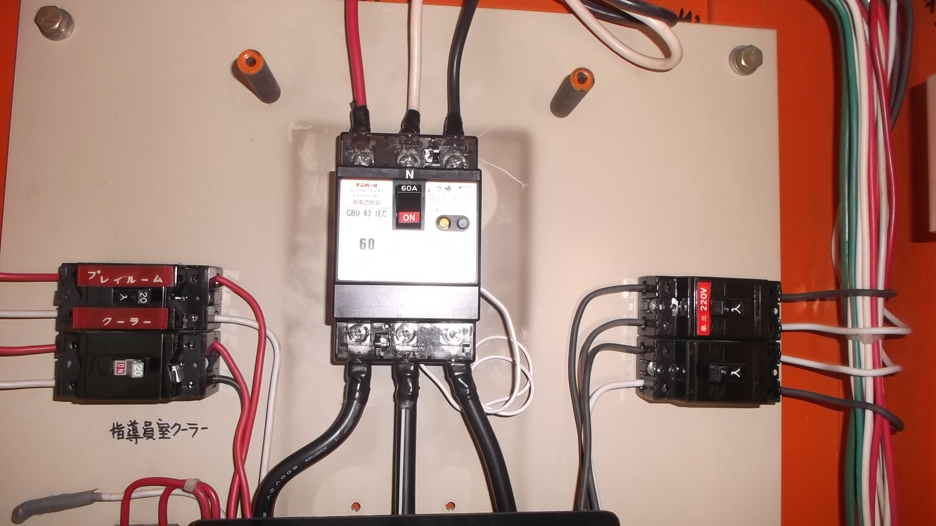 取替工事完了です。ヒューズ式のナイフスイッチをブレーカー(漏電遮断器)に取り換えました。