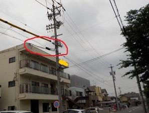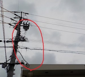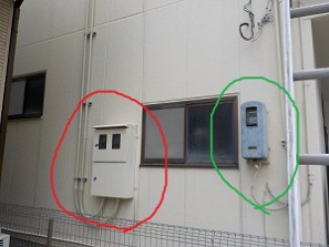 写真にある緑の丸内の高圧メーター撤去、赤丸内にある低圧メーター設置をします。