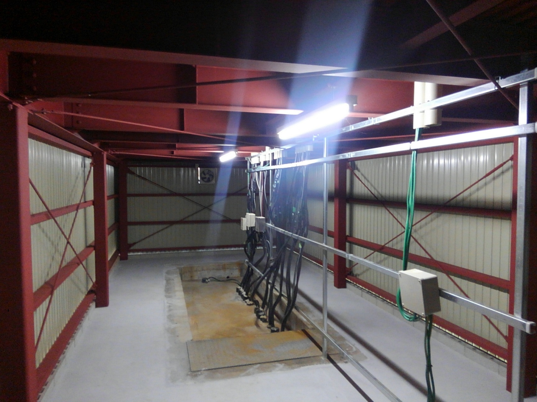 既設キュービクルがあった場所へ、嵩上するための建物を建て、その上にキュービクルを設置しました。