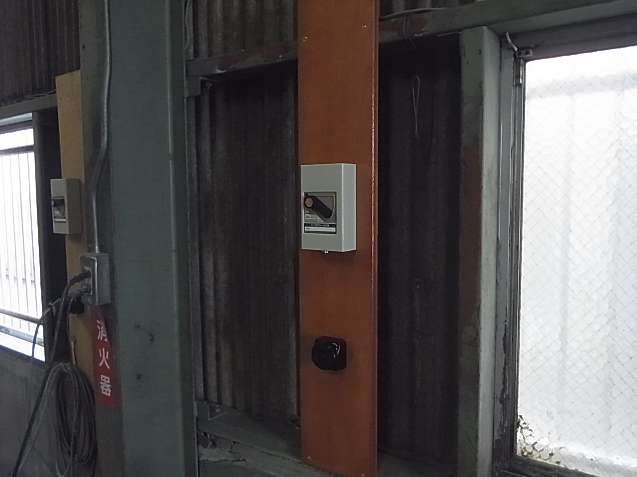 施工内容として、鉄骨のC鋼材に木板を取り付け→手元開閉器と動力用コンセントを配置→電気配線をして収める→通電後、電圧等の検査をして完了。の流れになります。
