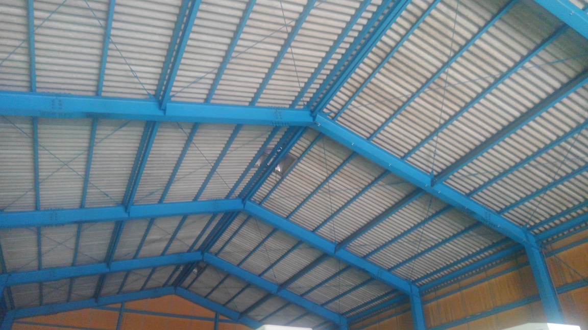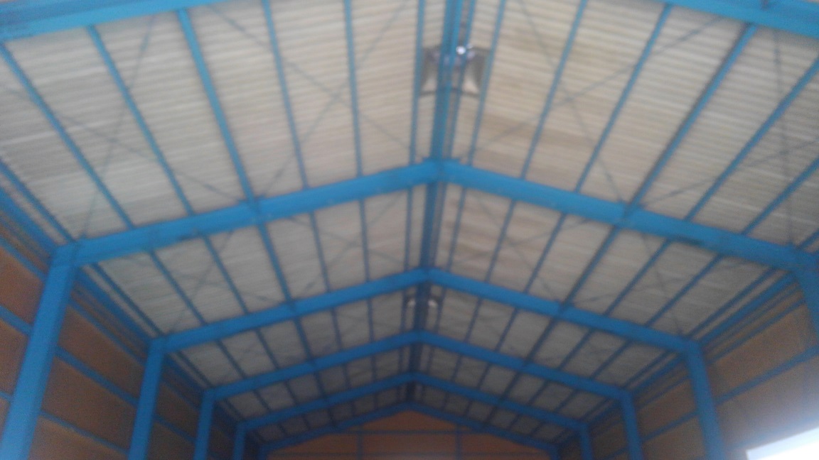 動力電源引込中です。この高さなら、梯子で配線配管工事が可能でした。