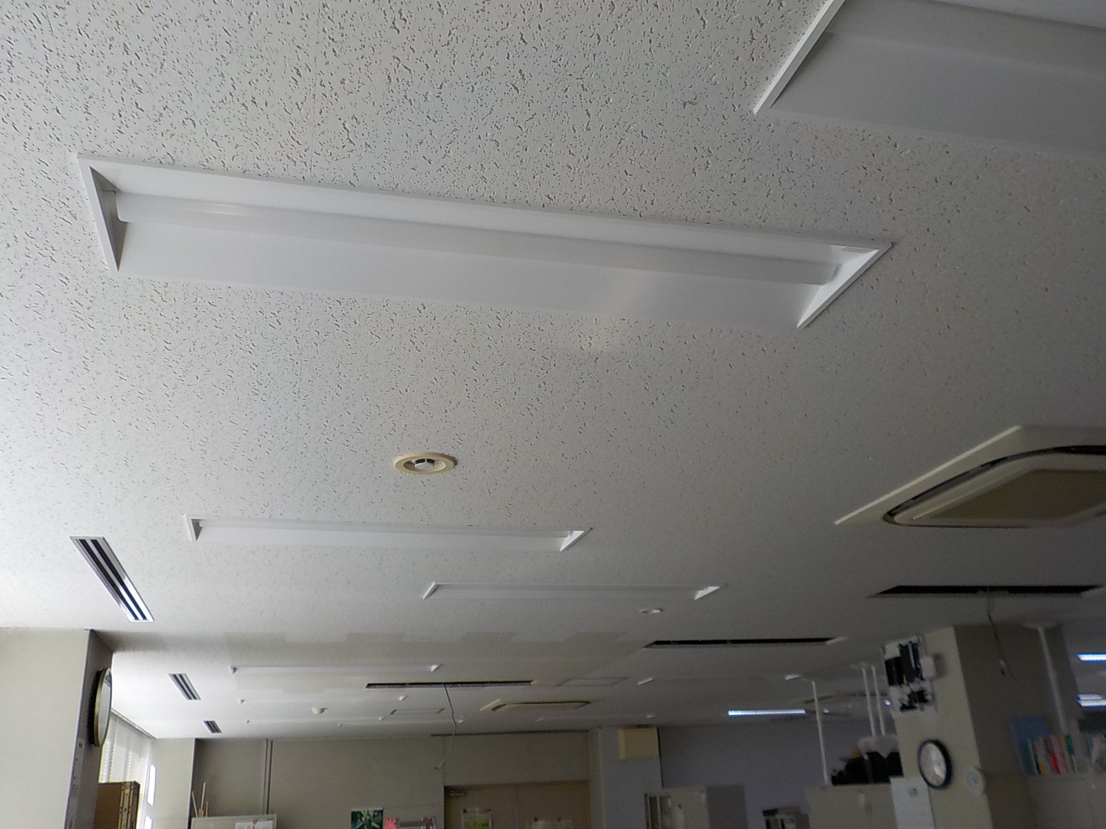 お客様より、「事務所内の蛍光灯埋込型をLED照明器具へ取替をしたい」とのご依頼をいただきました。