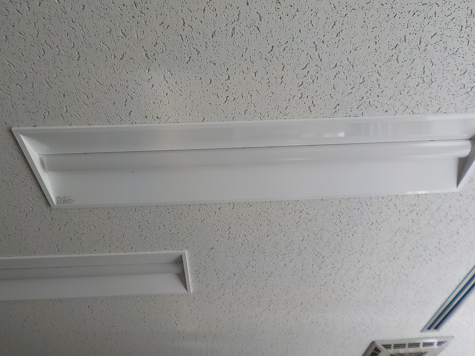 上の写真は、既設の蛍光灯器具です。作業内容は、埋込型蛍光灯器具をLED照明器具へ取替になります。