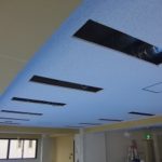 作業内容としまして、正方形型の埋め込み型照明器具から長方形型の照明器具への取替えです。写真は、取替前になります。